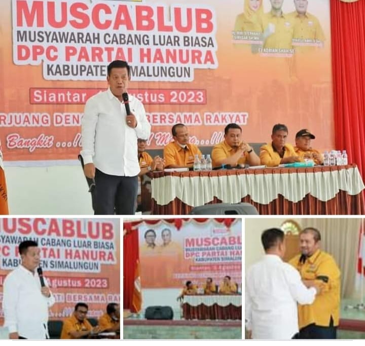 Jurnalpolri.com – SIMALUNGUN/SUMUT-Bupati Simalungun Radiapoh Hasiholan Sinaga menghadiri Musyawarah Cabang Luar Biasa (Muscablub) DPC (Dewan Pimpinan Cabang) Partai Hanura Kabupaten Simalungun yang